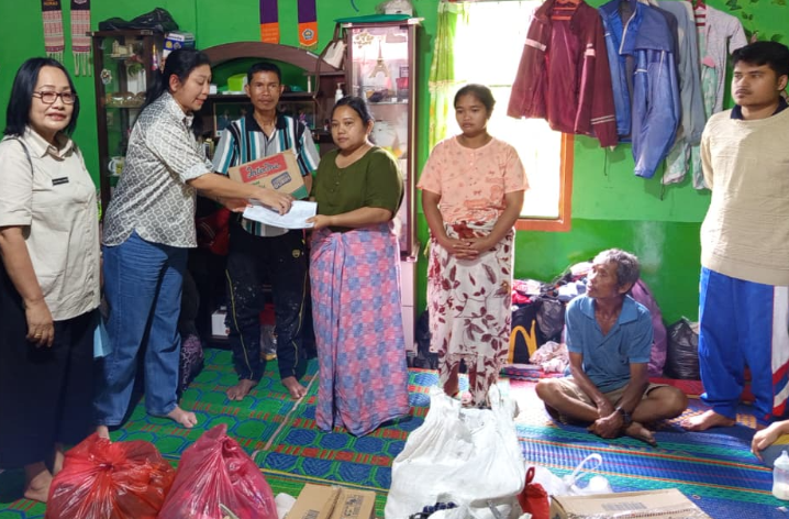 dalam kunjungan tersebut, rombongan Disdukcapil mendatangi warga di salah satu lokasi pengungsian. selain memberikan pelayanan langsung berupa penyerahan KTP, KK, dan Dokumen kependudukan lainnya, pemerintah juga memberikan batuan kebutuhan dasar seperti senbako dan perlengkapan RT.