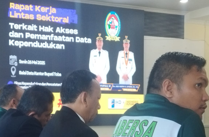 Pemerintah Kabupaten Tapanuli Utara melalui perwakilannya menghadiri Rapat kerja Lintas Sektoral yang membahas tentang Hak Akses dan Pemanfaatan data Kependudukan yang dilaksanakan di Aula kantor Bupati Toba, senin, (26 Mei 2025)